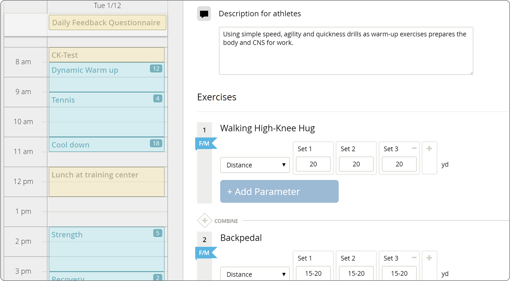Players track their workouts instantly from their smartphones. Monitor and analyze your players’ performance and adjust your plans when needed.